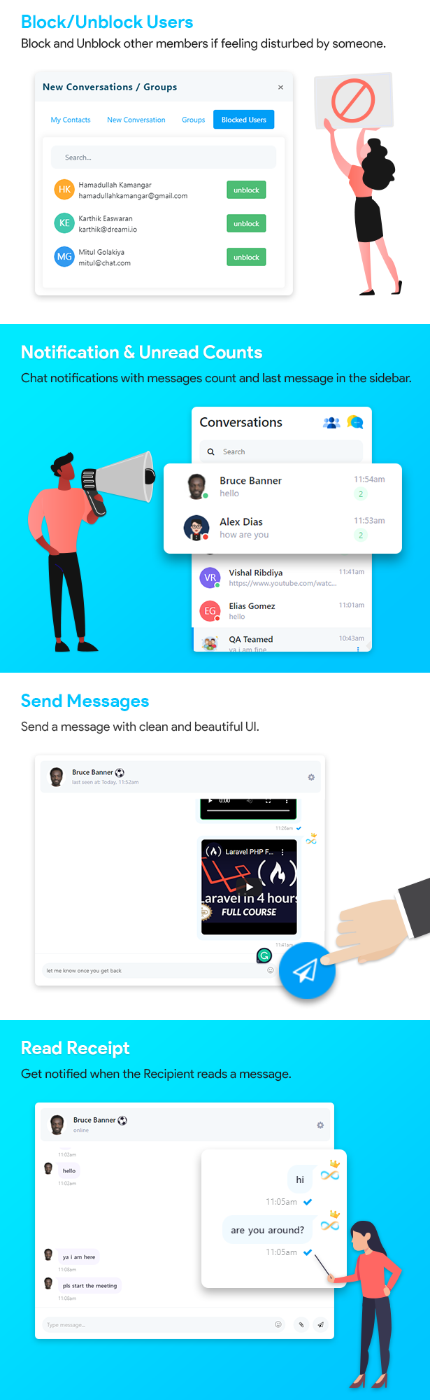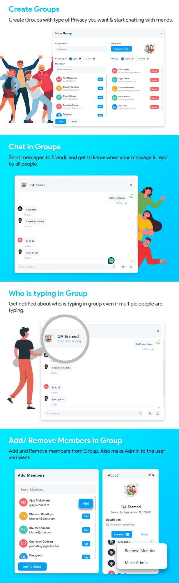 - Manage Group Members (Make Admin, Add Member, Remove Member)