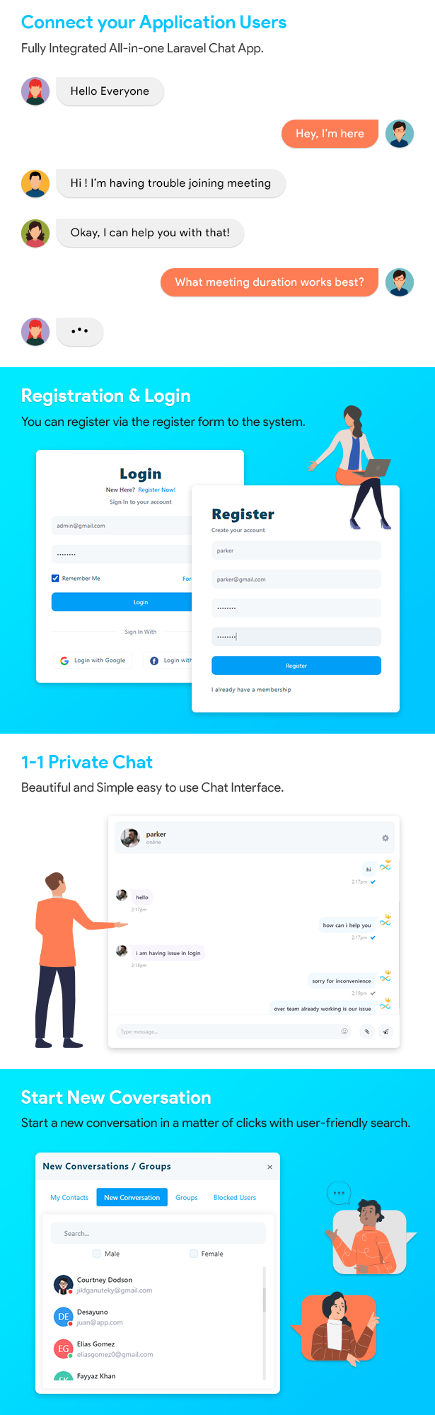 This provide user-to-user messaging / group messaging with the ability to search for users in the system and chat with each other.